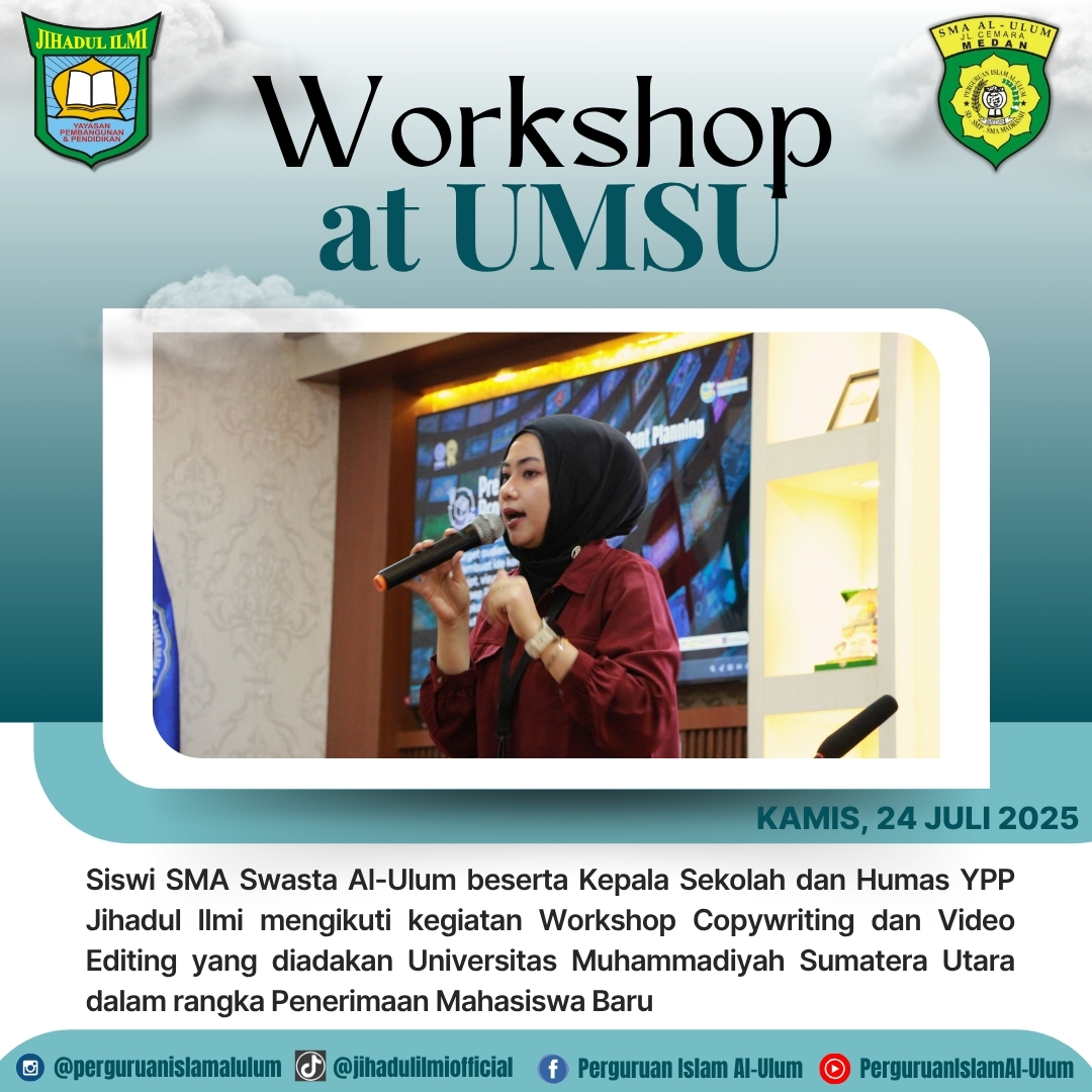 (Medan/24-Juli-2025) Siswi SMA Swasta Al-Ulum Medan bersama Kepala Sekolah dan Humas YPP Jihadul Ilmi mengikuti Workshop Copywriting dan Video Editing yang diselenggarakan oleh Universitas Muhammadiyah Sumatera Utara (UMSU). Kegiatan ini merupakan bagian dari program Penerimaan Mahasiswa Baru UMSU dan bertujuan untuk: Meningkatkan kemampuan literasi digital dan komunikasi visual Menumbuhkan kreativitas di era media sosial Membangun […]